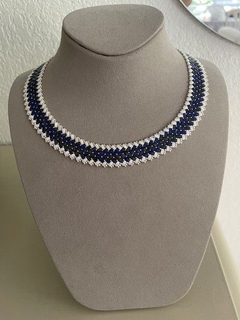 Pour cela nous utilisons surtout des perles de verre japonaise, fil, aiguille, tapis de perlage spécifiques aux différentes techniques d’enfilage, pour réaliser toutes sortes de créations selon les schémas.